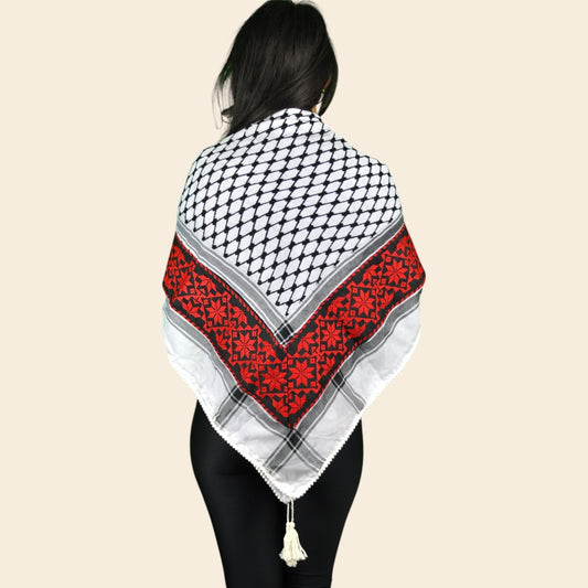 Tatreez Palestinian Keffiyeh - Embroidered Tatreez