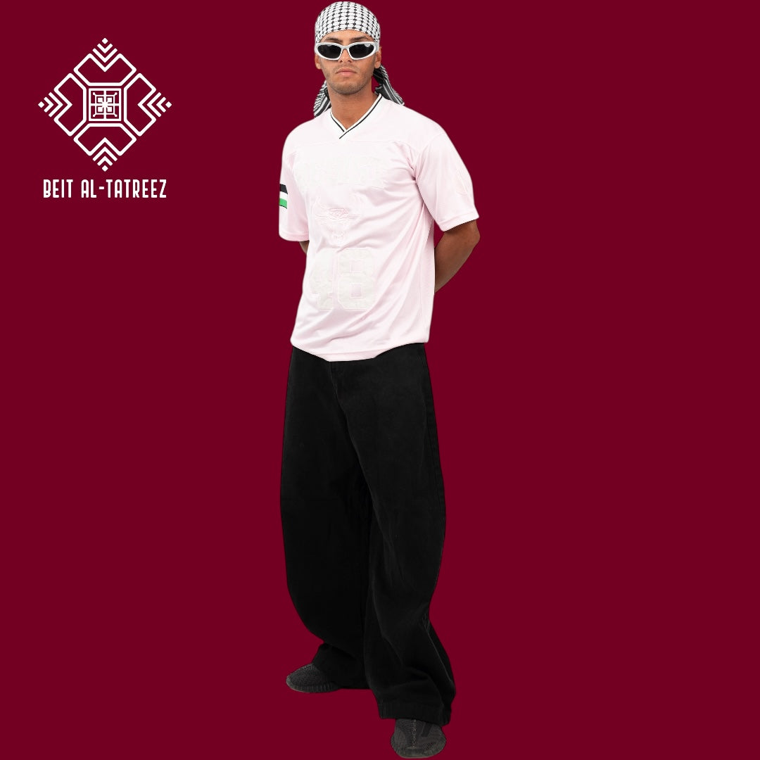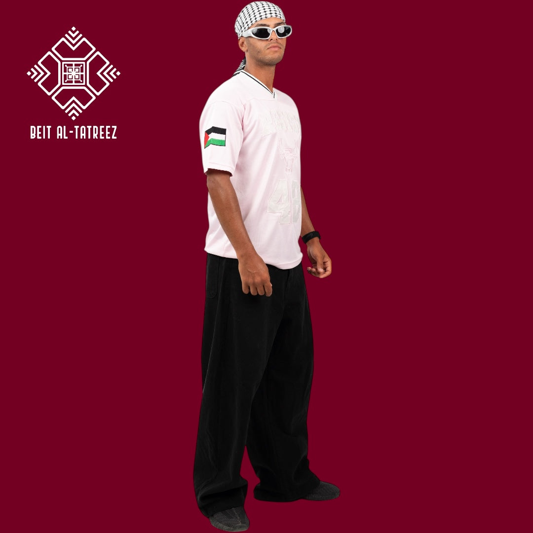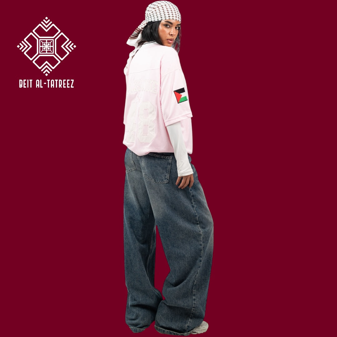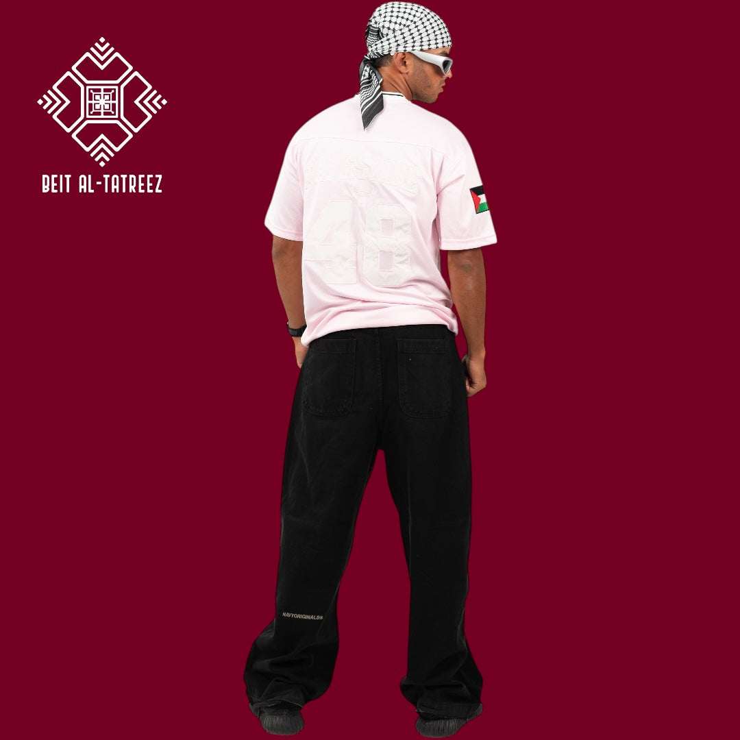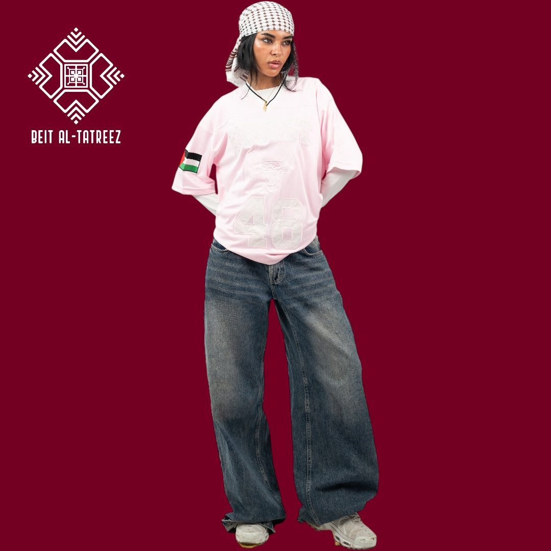 Stand proud and stand out. The Pink 48 Palestine Jersey blends soft pastel tones with a bold statement, carrying the number 48 as a symbol of resilience and heritage. Designed with an oversized streetwear fit, it’s perfect for layering or rocking solo.