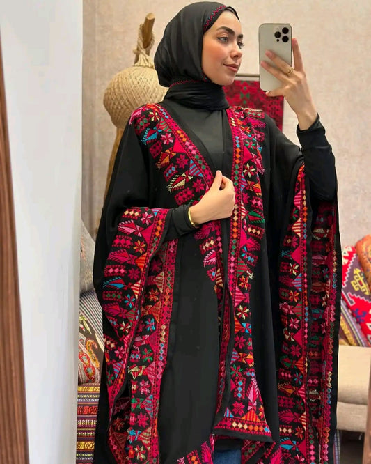 Hand embroidered shawls that blend classic tatreez techniques with modern style.