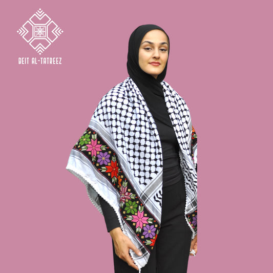 Tatreez Palestinian Keffiyeh – Embroidered Flowers