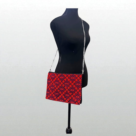 Handmade Ruby Red Traditional Tatreez Crossbody & Handbag